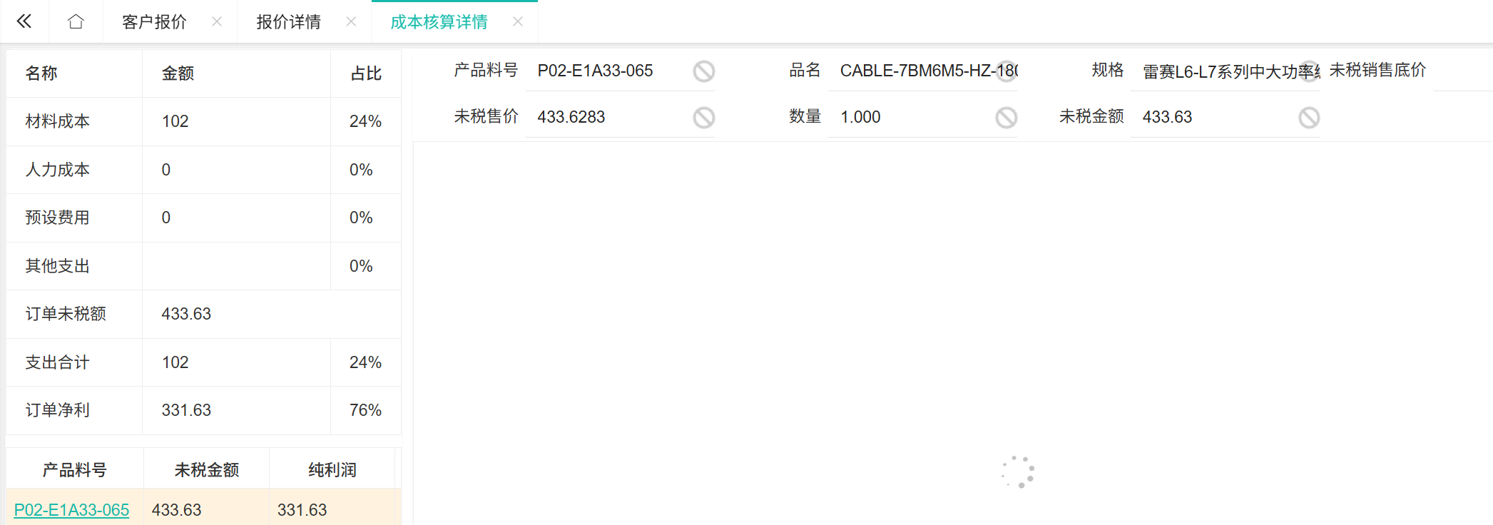 价格核算明细