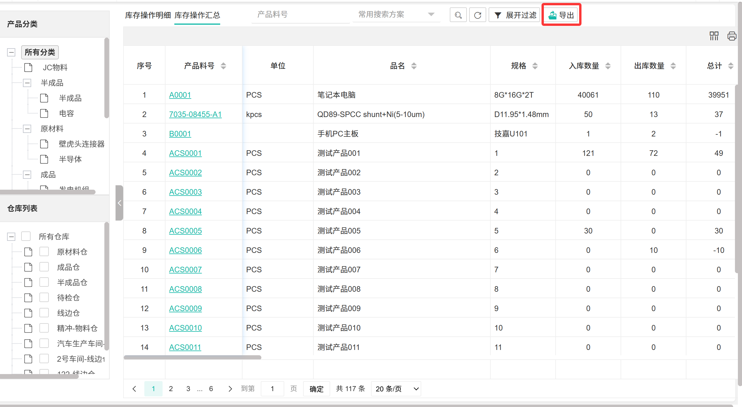 库存操作明细