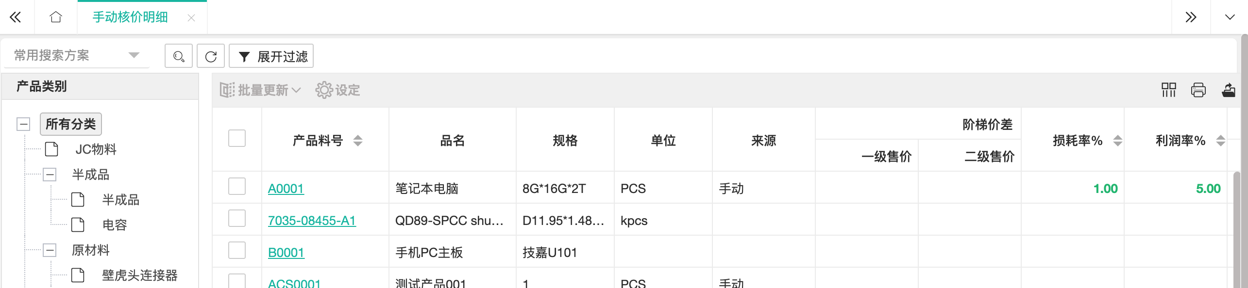 手动核价明细